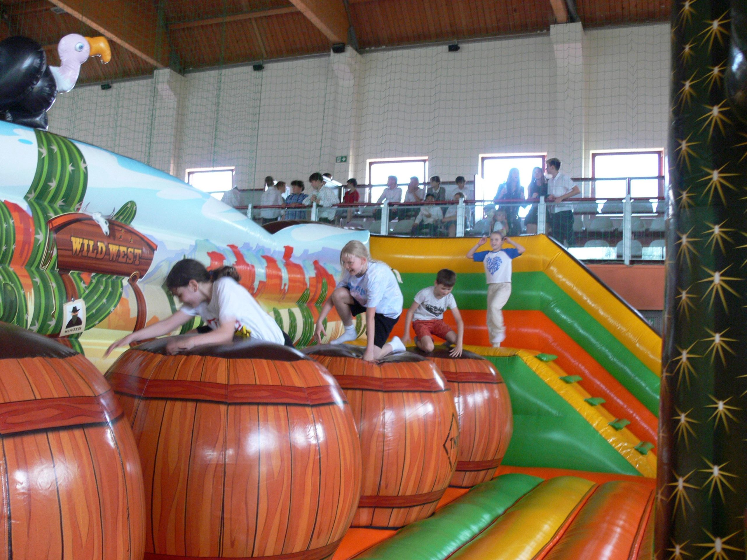 Po uroczystym przemarszu do kościoła parafialnego wszyscy uczniowie i goście wzięli udział w mszy świętej. Następnie w szkole odbył się dalszy ciąg uroczystości: audycja poświęcona patronce oraz Igrzyska Królowej Jadwigi, w których wzięły udział reprezentacje uczniów klas 4 – 8 oraz nauczycieli. Dzieci z klas 0 – 3 miały okazję skorzystać z dmuchanego placu zabaw ufundowanego przez Radę Rodziców, a wszyscy uczniowie z poczęstunku: przepysznych lodów, równie smacznych hot-dogów, waty cukrowej i popcornu. Najmłodsi uczniowie pod opieką wychowawców oraz starszych koleżanek i kolegów namalowali portrety patronki, ozdobili także korony królewskie. Święto Szkoły to jeden z najważniejszych dni w kalendarzu szkolnym. Zachęcamy do zapoznania się z fotorelacją z tego wydarzenia.